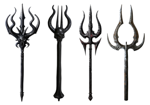 Collection of Artistic Devil Tridents with Various Unique Designs, isolated on transparent background