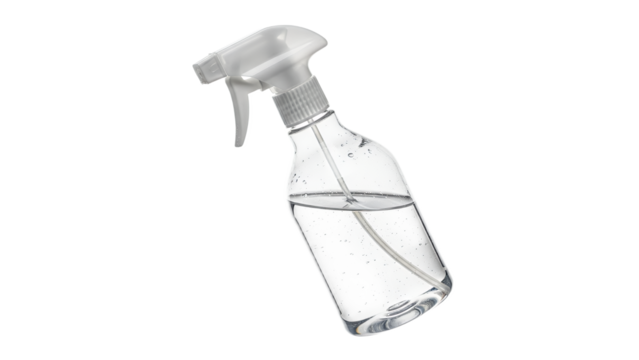White plastic spray bottle with trigger nozzle, isolated on transparent background