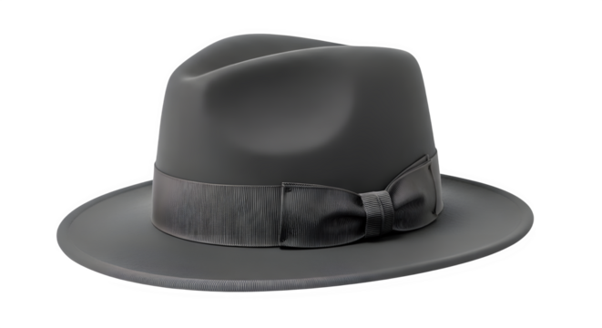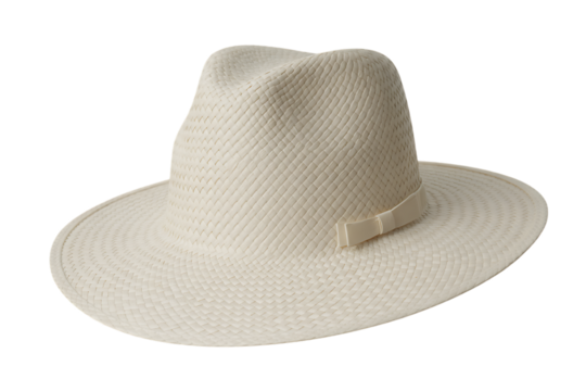 Classic cream felt fedora hat with ribbon band isolated on transparent background