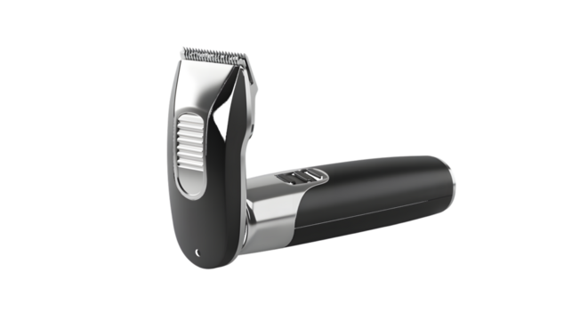 Electric trimmer with chrome accents isolated on a transparent background
