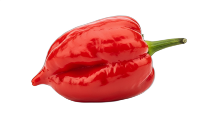 Single fresh ripe red Trinidad Moruga Scorpion pepper. PNG Transparent