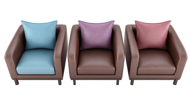Vibrant home decor, a trio of chairs with colorful pillows for cozy living spaces