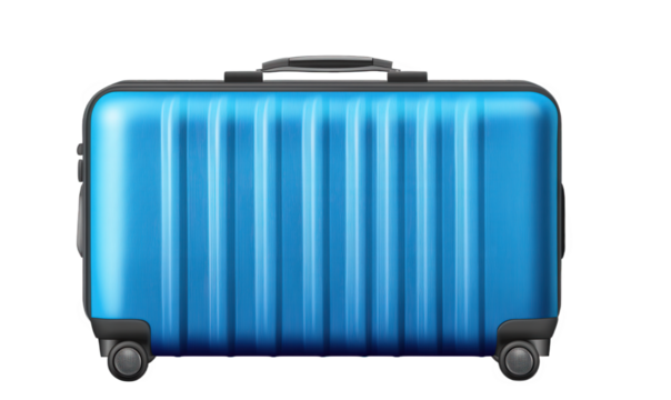 Tourism and vacation concept presenting a turquoise suitcase for travel, baggage, and holidays with transparent background