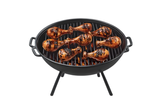 Grilled chicken drumsticks on a black grill delicious summer food