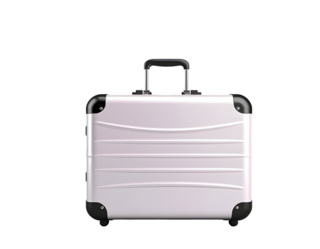 Traveling with white hard shell luggage, modern trolley suitcase on transparent background, packing for vacation