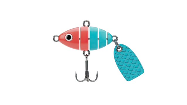 Fishing Lure with Red and Blue Body and Scaled Tail