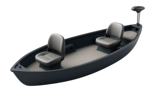 Drift fishing boat with narrow beam and transom-mounted trolling motor