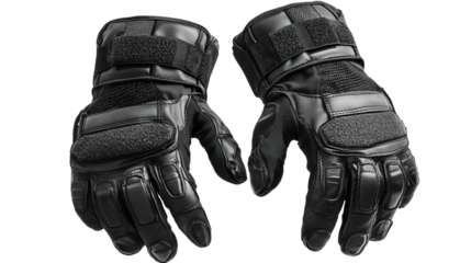A pair of black tactical gloves with reinforced knuckle padding and cut-resistant fabric, providing maximum protection and grip for law enforcement and self-defense.