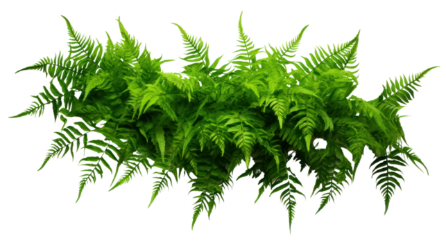 Lush fern and tropical leaves border isolated on transparent background, suitable for botanical designs, digital art, and eco-friendly themes