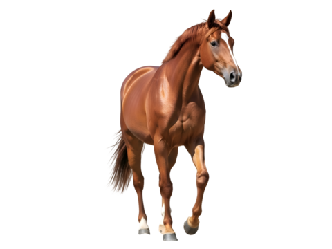 Majestic Bay Horse with White Blaze Walking Forward Isolated on Transparent Background Isolated on T