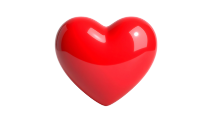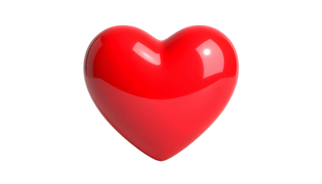 Red metallic heart, glossy love symbol with a shiny surface, representing romance and passion on transparent background