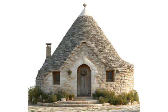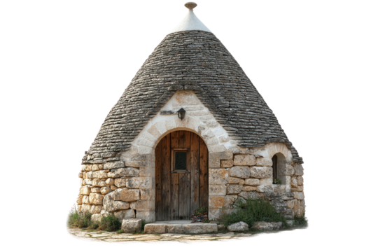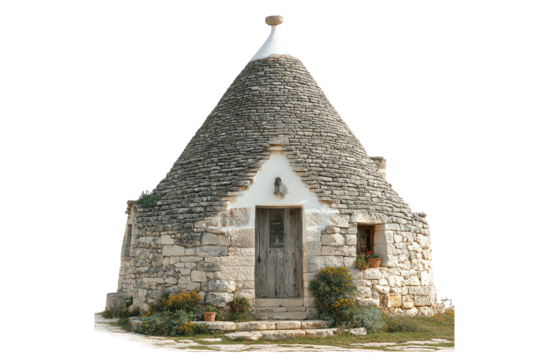 Architectural Charm: A timeless trullo showcases the unique beauty of traditional architecture, Its conical roof and stone facade evoke a sense of history.