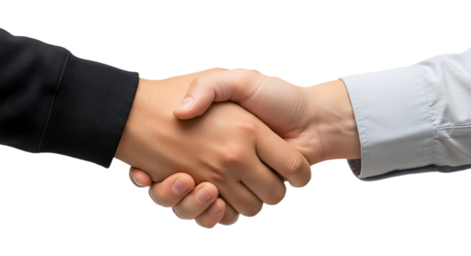 Two Hands Shaking in Firm Grip Representing Business Agreement Partnership Trust or Professional Relationship Establishment, png