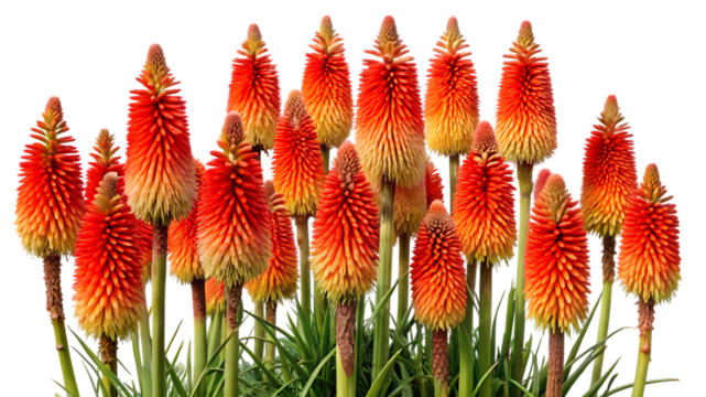 Yellow flower spike from a succulent plant, featuring numerous vibrant tubular blossoms. Isolated on a pure white background for botanical projects