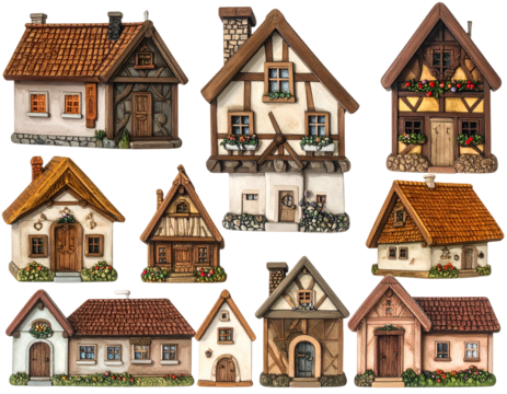 Charming, whimsical cottages with varied architectural styles