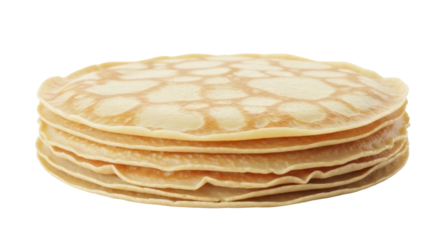 Isolated stack of thin pancakes for Shrove Tuesday or breakfast, fresh homemade food