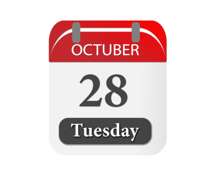 A calendar page showing october twenty eighth on a tuesday with a red and white color scheme image