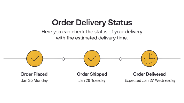 Visual infographic tracking order delivery status with placed, shipped, and delivered markers indicating process completion stages