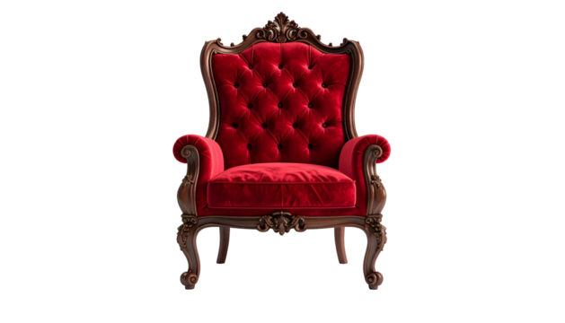 Luxurious red velvet couch with tufted design enhancing a stylish living room aesthetic isolated on transparent background