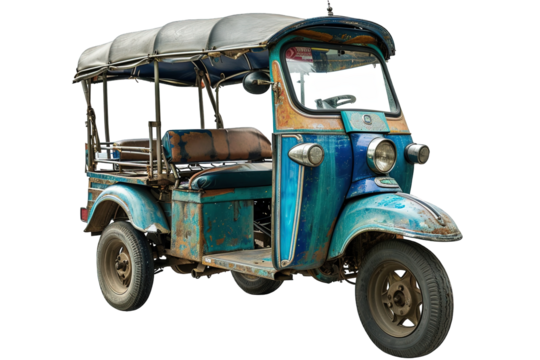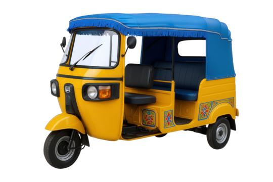 Auto rickshaw a three-wheeled public transport taxi, isolated on transparent background, showing driver and passenger seats