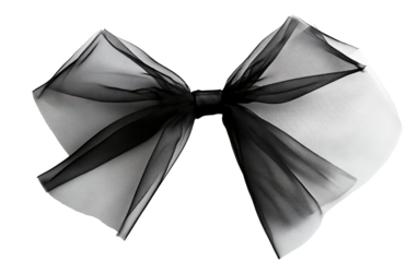 Black bow in tulle fabric mesh isolated on white or transparent background