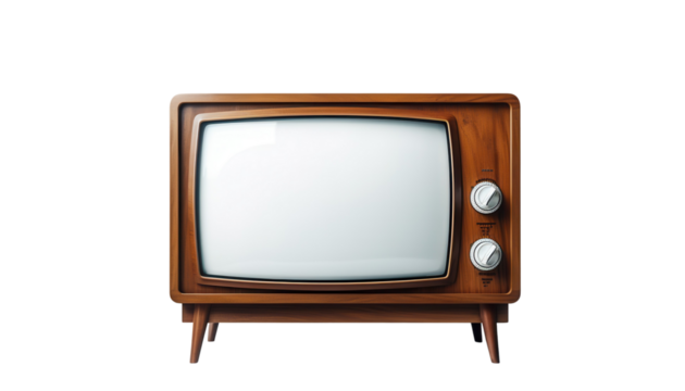 Old retro television set with blank screen, isolated against a clean background, highlighting vintage aesthetics with dials, knobs, and timeless charm.