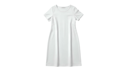 A simple, white, oversized tunic dress or kaftan is shown against a white background.