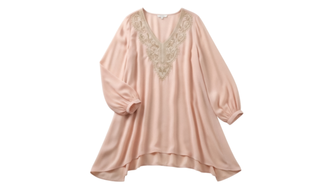Elegant peach tunic with embroidered neckline isolated PNG, stylish women s top for fashion design and apparel mockups