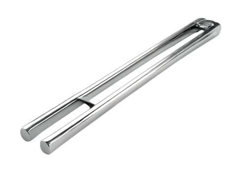 Shiny silver tuning fork stands out, high contrast, for sound therapy, audio engineering illustrations.