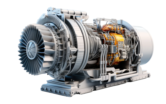 Big And Solid Frame Industrial Gas Turbine on White or PNG Transparent Background.