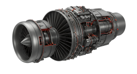 Modern Energy-Efficient Turbofan Jet Engine on Transparent Background