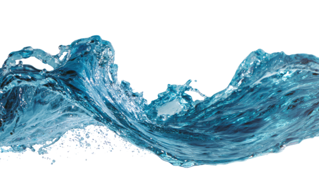 Dynamic water wave splashing with energy and motion in a clear background