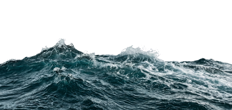 Energetic ocean waves crashing over a calm horizon rendered on isolated transparent background