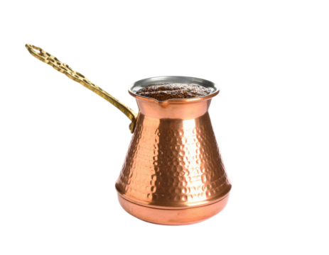 Turkish Coffee PNG – Traditional Türk Kahvesi in Copper Cup, Transparent Background
