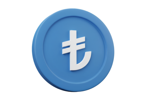 3D Render Of Blue Turkish Lira Coin Isolated On Transparent Background