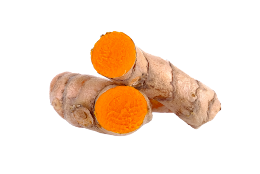 Close up of turmeric or curcuma longa with isolated powder on transparent background. PNG