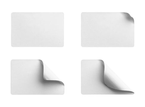 White Rectangle Stickers with Corner Peels isolated on transparent background