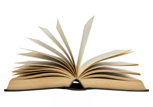 Isolated open book with pages turned, revealing knowledge and secrets inside, a symbol of literacy