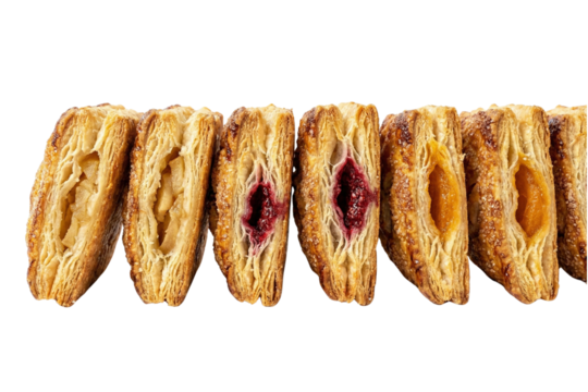 Delicious golden apple turnovers with sweet filling isolated on transparent background