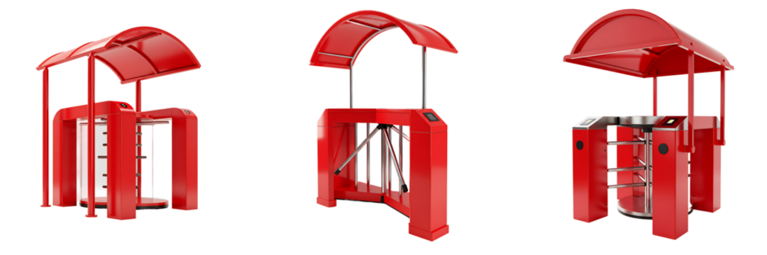 Red Turnstile Entry Gates with Canopy on Transparent Background