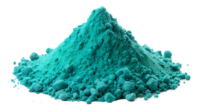 Turquoise Powder Pile: Close-up of a turquoise color powder pile, isolated on a white background.