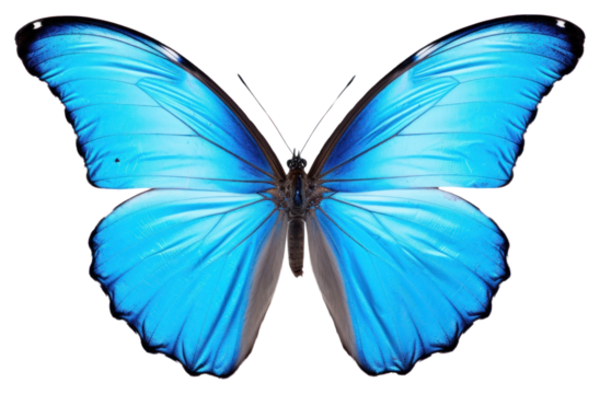 vibrant turquoise butterfly with intricate wing patterns. set against a clean white background. emphasizing its delicate beauty and natural elegance the contrast highlights the butterfly's details. ma