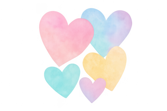 Pastel watercolor hearts for love and romance concept