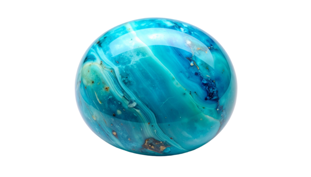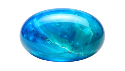 Translucent sphere with layered turquoise and brown textures, isolated