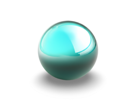 A luminous, teal orb against a stark black backdrop. The sphere has a glossy, transparent appearance with internal lighting, creating a captivating glow