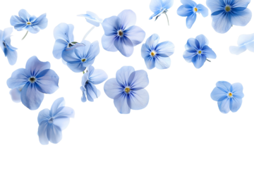 Delicate blue snowdrop flowers with floating petals isolated on a pure white background, a symbol of early spring