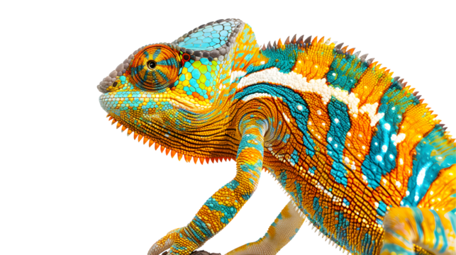 Yellow blue lizard Panther chameleon isolated on white or transparent background, PNG