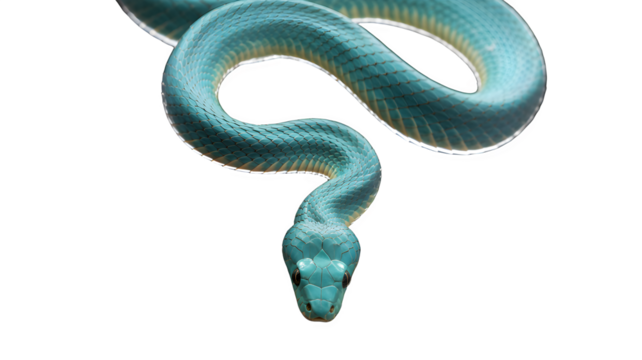 This image showcases a vibrant green snake, coiled in a captivating pose against a backdrop of multicolored horizontal stripes.