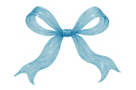 Blue watercolor ribbon bow presenting delicate gift decoration and festive event wrapping on transparent background