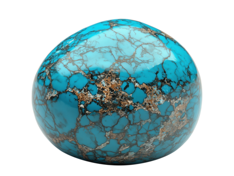 Turquoise Gemstone: Close-up of a vibrant, polished turquoise stone, showcasing its intricate web of dark matrix and brilliant blue hues.  A captivating image perfect for jewelry design.